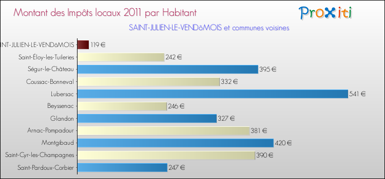 A noter : la valeur moyenne des impôts locaux dans les communes françaises similaires à Saint-Julien-le-Vendômois était de 264 € par habitant, en 2011.