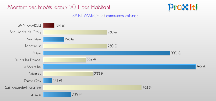 A noter : la valeur moyenne des impôts locaux dans les communes françaises similaires à Saint-Marcel était de 269 € par habitant, en 2011.