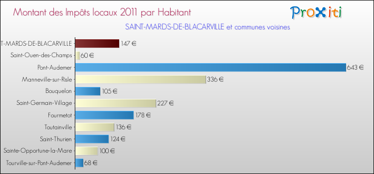 A noter : la valeur moyenne des impôts locaux dans les communes françaises similaires à Saint-Mards-de-Blacarville était de 333 € par habitant, en 2011.