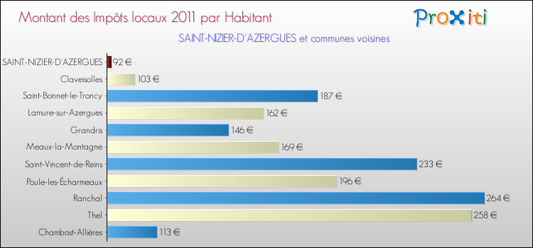 A noter : la valeur moyenne des impôts locaux dans les communes françaises similaires à Saint-Nizier-d'Azergues était de 269 € par habitant, en 2011.