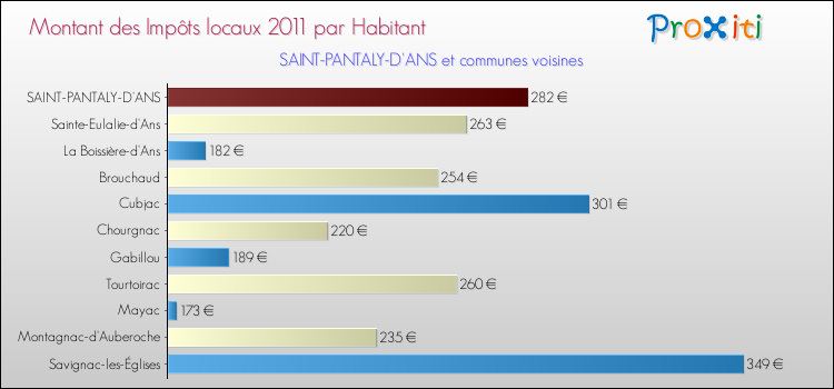 A noter : la valeur moyenne des impôts locaux dans les communes françaises similaires à Saint-Pantaly-d'Ans était de 238 € par habitant, en 2011.