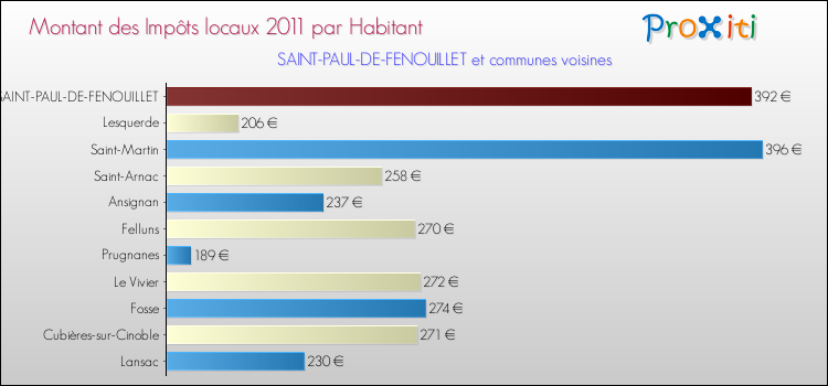A noter : la valeur moyenne des impôts locaux dans les communes françaises similaires à Saint-Paul-de-Fenouillet était de 269 € par habitant, en 2011.