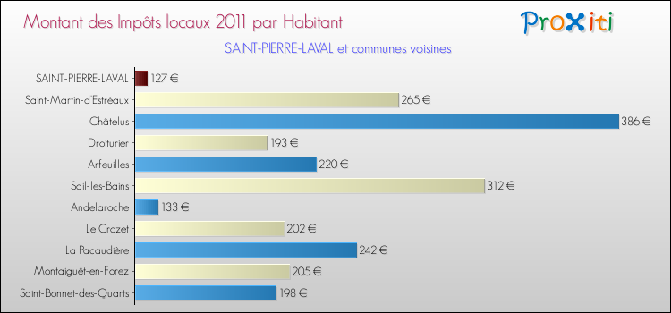 A noter : la valeur moyenne des impôts locaux dans les communes françaises similaires à Saint-Pierre-Laval était de 234 € par habitant, en 2011.