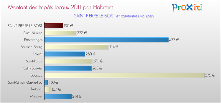 Comparaison des impôts locaux par habitant pour SAINT-PIERRE-LE-BOST et les communes voisines