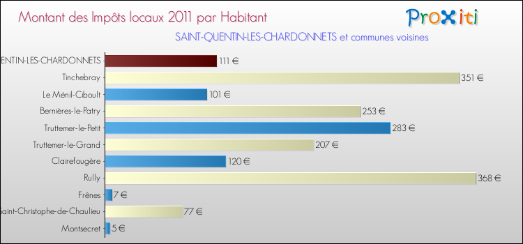 Vous trouverez ci-dessous des graphiques qui vous permettent de comparer le niveau d'impôts locaux de Saint-Quentin-les-Chardonnets avec les communes voisines.