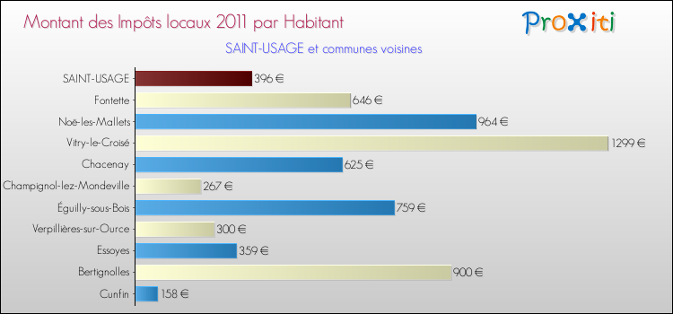 A noter : la valeur moyenne des impôts locaux dans les communes françaises similaires à Saint-Usage était de 238 € par habitant, en 2011.
