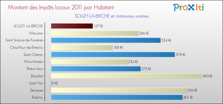 A noter : la valeur moyenne des impôts locaux dans les communes françaises similaires à Souzy-la-Briche était de 234 € par habitant, en 2011.
