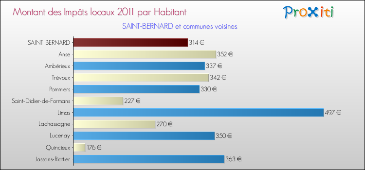 Pendant la même période, les communes françaises similaires à Saint-Bernard, ont vu leurs impôts locaux par habitant augmenter de 29.33 % en moyenne entre 2000 et 2011.