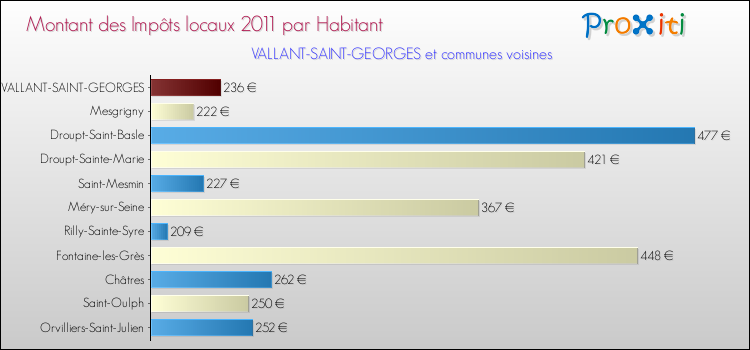 A Vallant-Saint-Georges, les impôts locaux par habitant sont donc plus bas de 10.61 % que pour des communes similaires.