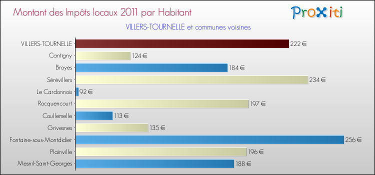 A noter : la valeur moyenne des impôts locaux dans les communes françaises similaires à Villers-Tournelle était de 238 € par habitant, en 2011.