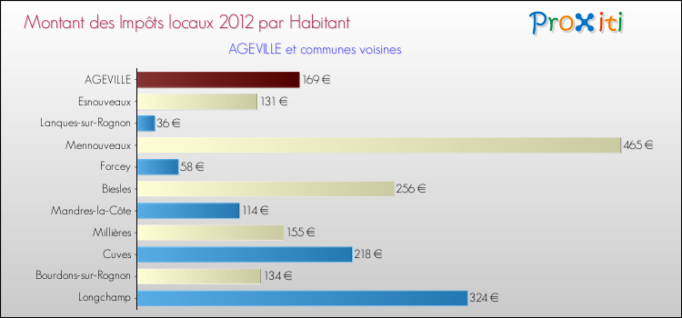A noter : la valeur moyenne des impôts locaux dans les communes françaises similaires à Ageville était de 272 € par habitant, en 2012.