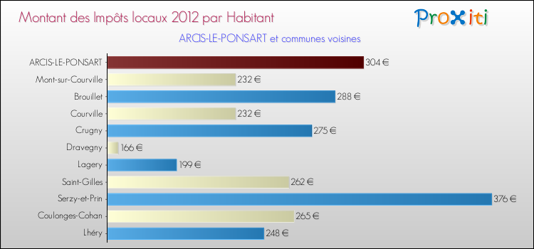 A noter : la valeur moyenne des impôts locaux dans les communes françaises similaires à Arcis-le-Ponsart était de 272 € par habitant, en 2012.