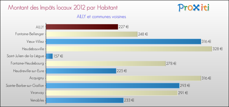 A Ailly, en 2012 les impôts locaux par habitant sont donc plus bas de 18.05 % que pour des communes similaires.
