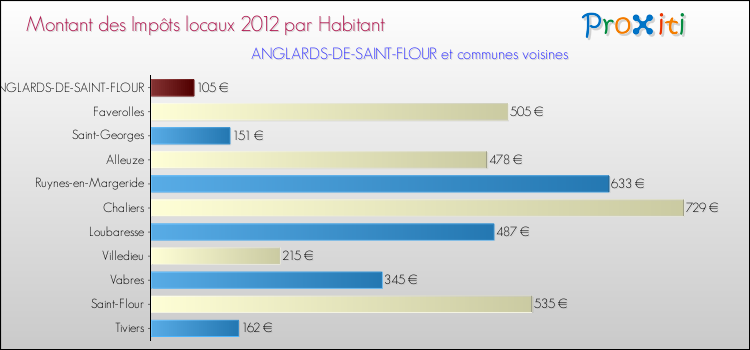 A Anglards-de-Saint-Flour, en 2012 les impôts locaux par habitant sont donc plus bas de 56.61 % que pour des communes similaires.