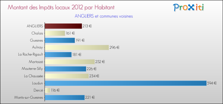 A Angliers, en 2012 les impôts locaux par habitant sont donc plus bas de 38.26 % que pour des communes similaires.