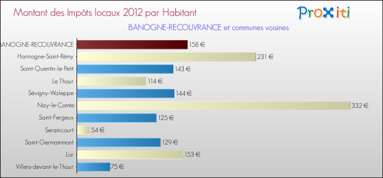 A noter : la valeur moyenne des impôts locaux dans les communes françaises similaires à Banogne-Recouvrance était de 248 € par habitant, en 2012.