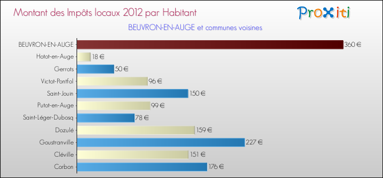 A Beuvron-en-Auge, en 2012 les impôts locaux par habitant sont donc plus élevés de 46.94 % que pour des communes similaires.