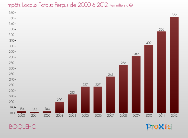 A Boqueho, les impôts locaux par habitant ont donc augmentés de 55.87 % entre 2000 et 2012.