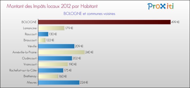 A noter : la valeur moyenne des impôts locaux dans les communes françaises similaires à Bologne était de 345 € par habitant, en 2012.