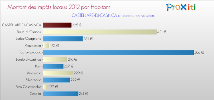 A noter : la valeur moyenne des impôts locaux dans les communes françaises similaires à Castellare-di-Casinca était de 345 € par habitant, en 2012.