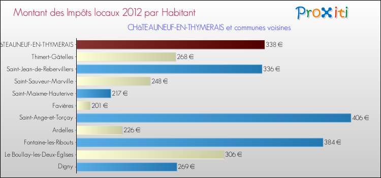 A noter : la valeur moyenne des impôts locaux dans les communes françaises similaires à Châteauneuf-en-Thymerais était de 343 € par habitant, en 2012.