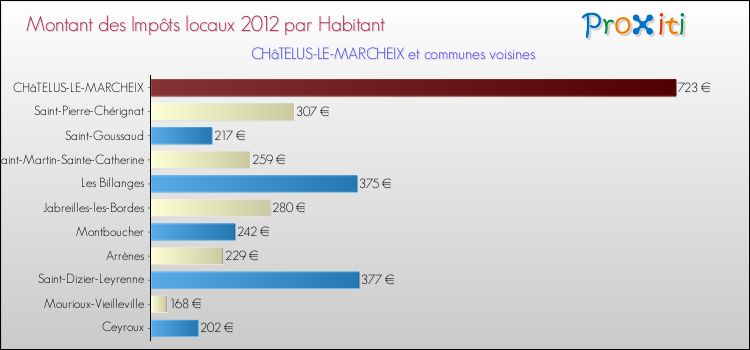 A Châtelus-le-Marcheix, en 2012 les impôts locaux par habitant sont donc plus élevés de 165.81 % que pour des communes similaires.