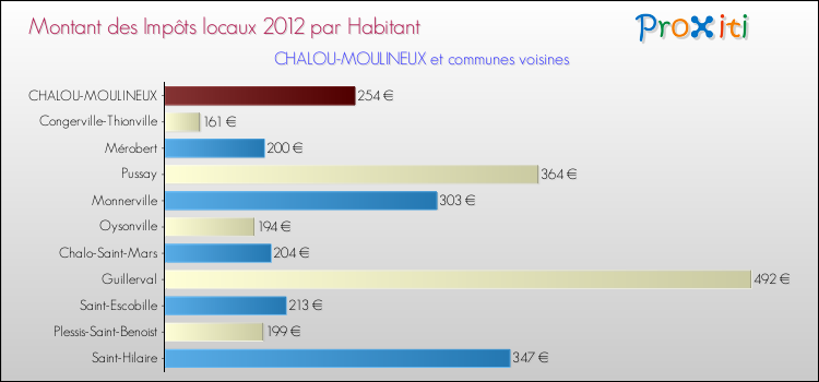A Chalou-Moulineux, en 2012 les impôts locaux par habitant sont donc plus bas de 38.94 % que pour des communes similaires.
