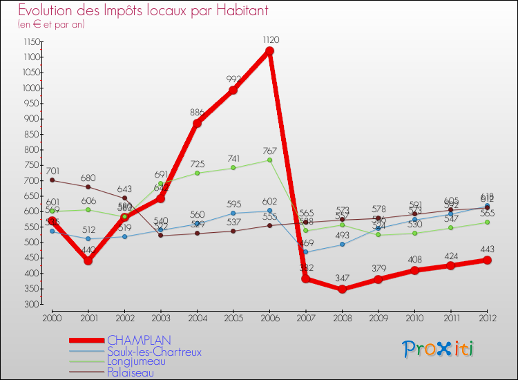 A Champlan, les impôts locaux par habitant ont augmentés de 27.67 % entre 2008 et 2012.