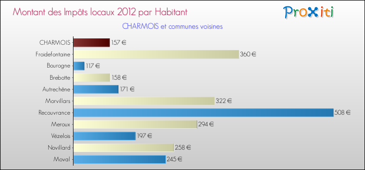 A Charmois, les impôts locaux par habitant ont donc augmentés de 60.2 % entre 2000 et 2012.