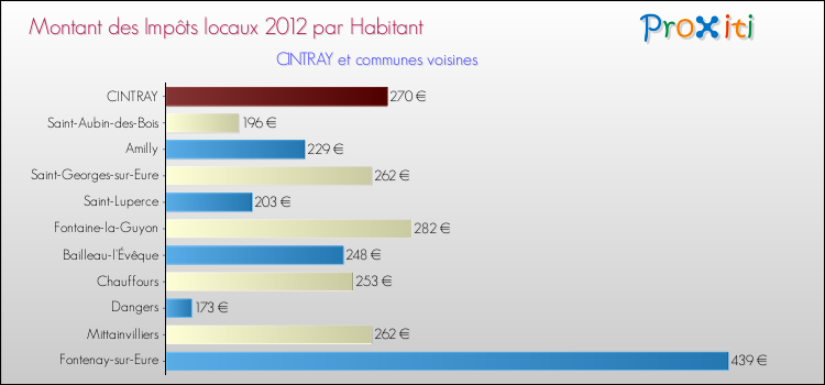 A Cintray, en 2012 les impôts locaux par habitant sont donc plus élevés de 11.57 % que pour des communes similaires.