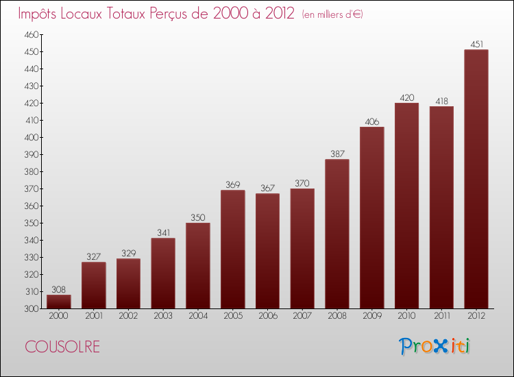 A Cousolre, les impôts locaux par habitant ont donc augmentés de 42.19 % entre 2000 et 2012.