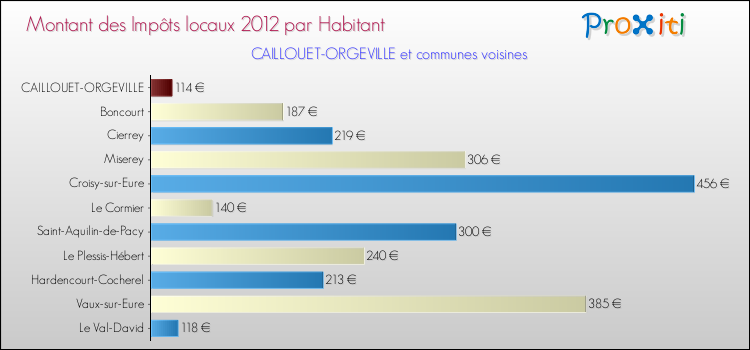 A Caillouet-Orgeville, en 2012 les impôts locaux par habitant sont donc plus bas de 52.89 % que pour des communes similaires.