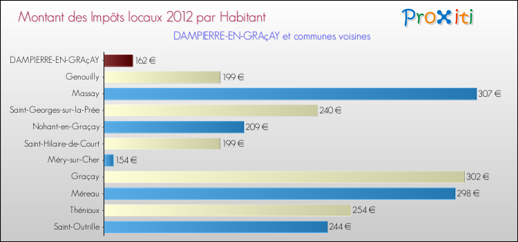 A noter : la valeur moyenne des impôts locaux dans les communes françaises similaires à Dampierre-en-Graçay était de 245 € par habitant, en 2012.