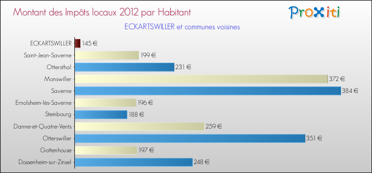 A Eckartswiller, en 2012 les impôts locaux par habitant sont donc plus bas de 40.08 % que pour des communes similaires.