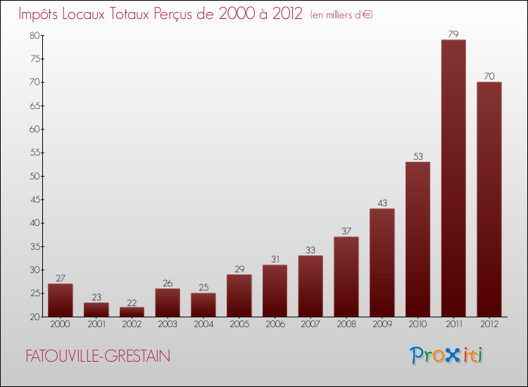 Evolution des Impôts Locaux perçus par la commune de FATOUVILLE-GRESTAIN de 2000 à 2012