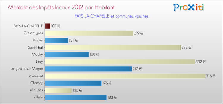 A Fays-la-Chapelle, en 2012 les impôts locaux par habitant sont donc plus bas de 56.33 % que pour des communes similaires.