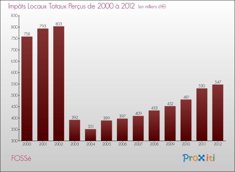 Evolution des Impôts Locaux perçus par la commune de FOSSé de 2000 à 2012