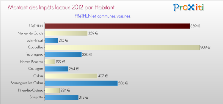 A Fréthun, en 2012 les impôts locaux par habitant sont donc plus élevés de 210.11 % que pour des communes similaires.