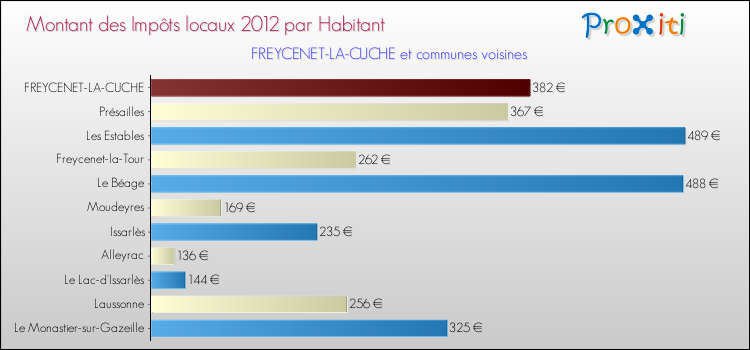 A noter : la valeur moyenne des impôts locaux dans les communes françaises similaires à Freycenet-la-Cuche était de 245 € par habitant, en 2012.
