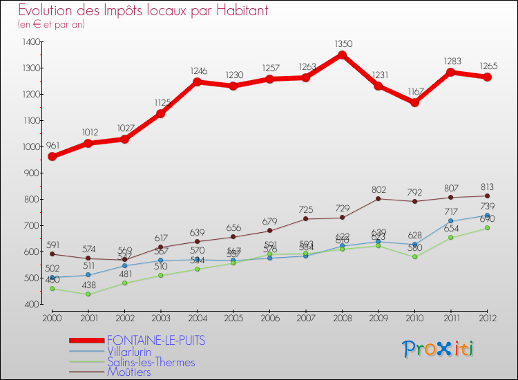 A Fontaine-le-Puits, les impôts locaux par habitant ont donc augmentés de 31.63 % entre 2000 et 2012.