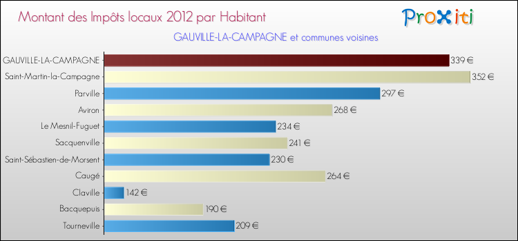 A Gauville-la-Campagne, en 2012 les impôts locaux par habitant sont donc plus élevés de 22.38 % que pour des communes similaires.