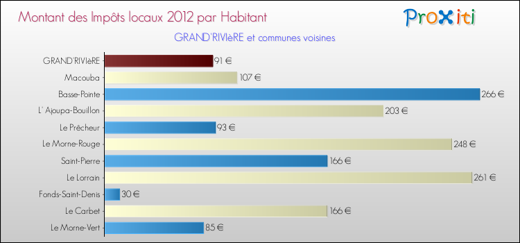 A Grand'Rivière, en 2012 les impôts locaux par habitant sont donc plus bas de 73.62 % que pour des communes similaires.