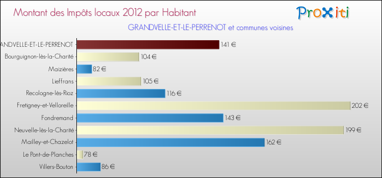 A Grandvelle-et-le-Perrenot, en 2012 les impôts locaux par habitant sont donc plus bas de 41.74 % que pour des communes similaires.
