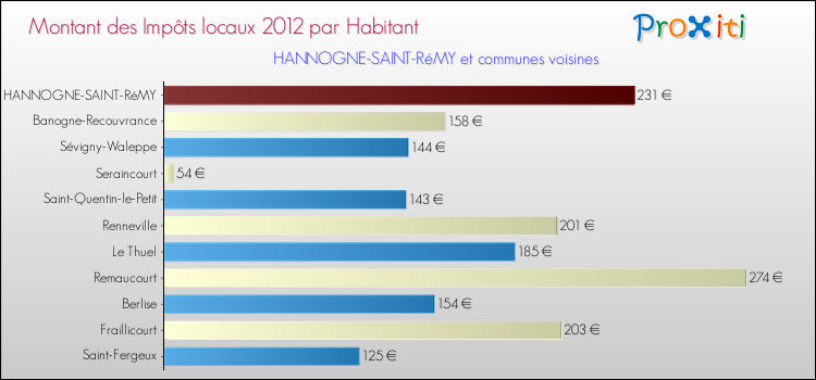 A noter : la valeur moyenne des impôts locaux dans les communes françaises similaires à Hannogne-Saint-Rémy était de 248 € par habitant, en 2012.