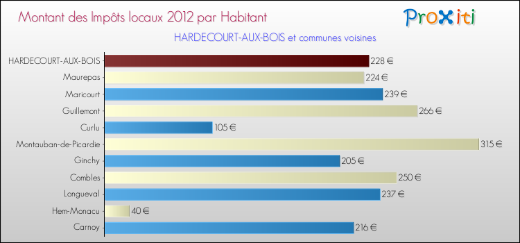 A Hardecourt-aux-Bois, en 2012 les impôts locaux par habitant sont donc plus bas de 6.94 % que pour des communes similaires.