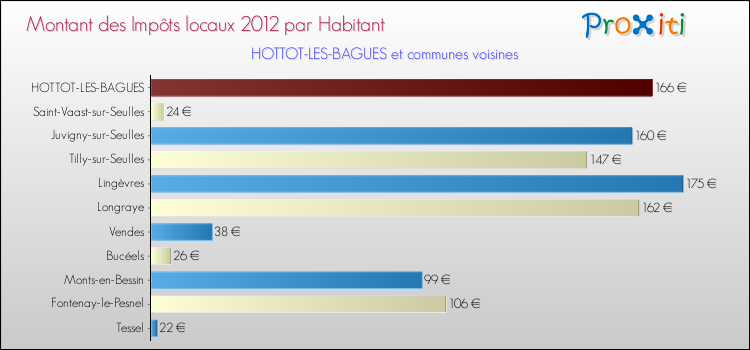 A Hottot-les-Bagues, les impôts locaux par habitant ont donc augmentés de 32.8 % entre 2000 et 2012.