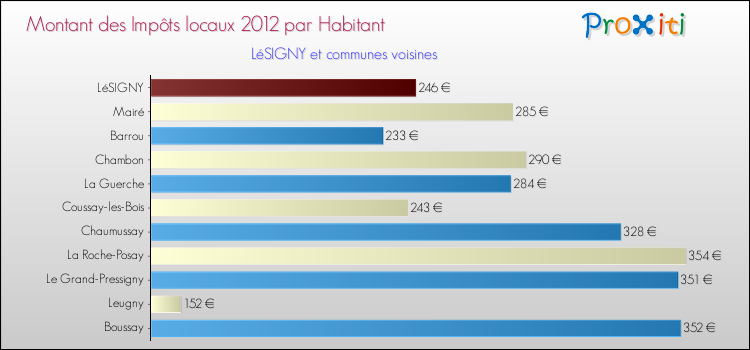 A noter : la valeur moyenne des impôts locaux dans les communes françaises similaires à Lésigny était de 277 € par habitant, en 2012.