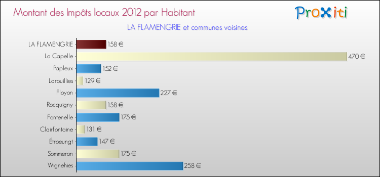 A La Flamengrie, en 2012 les impôts locaux par habitant sont donc plus bas de 42.96 % que pour des communes similaires.