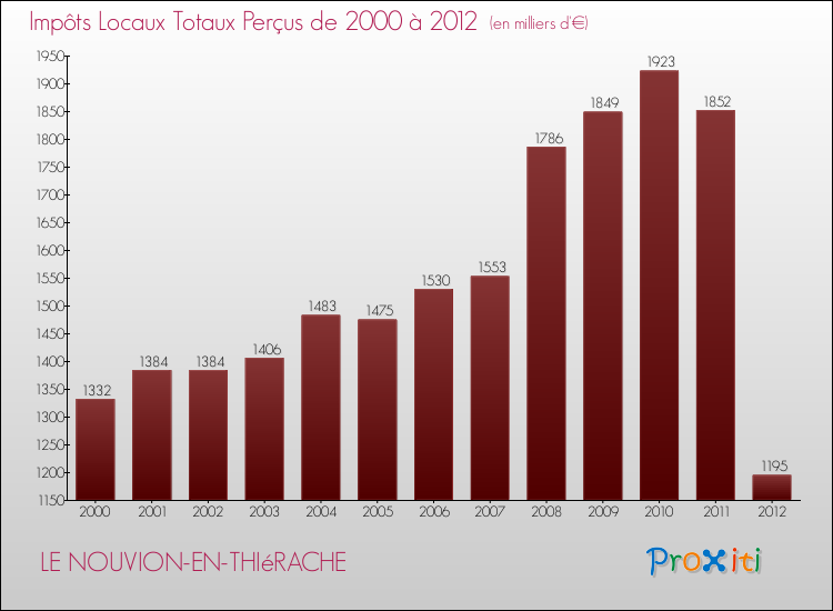 Evolution des Impôts Locaux perçus par la commune de LE NOUVION-EN-THIéRACHE de 2000 à 2012