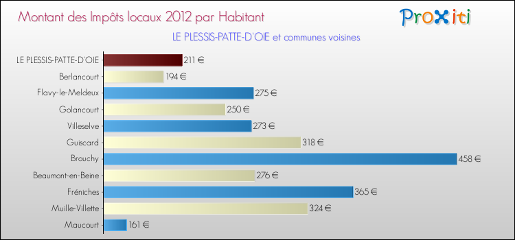 A noter : la valeur moyenne des impôts locaux dans les communes françaises similaires à Le Plessis-Patte-d'Oie était de 248 € par habitant, en 2012.